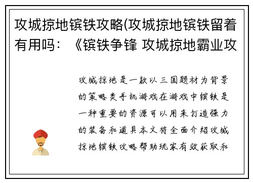 攻城掠地镔铁攻略(攻城掠地镔铁留着有用吗:《镔铁争锋 攻城掠地霸业攻略》)